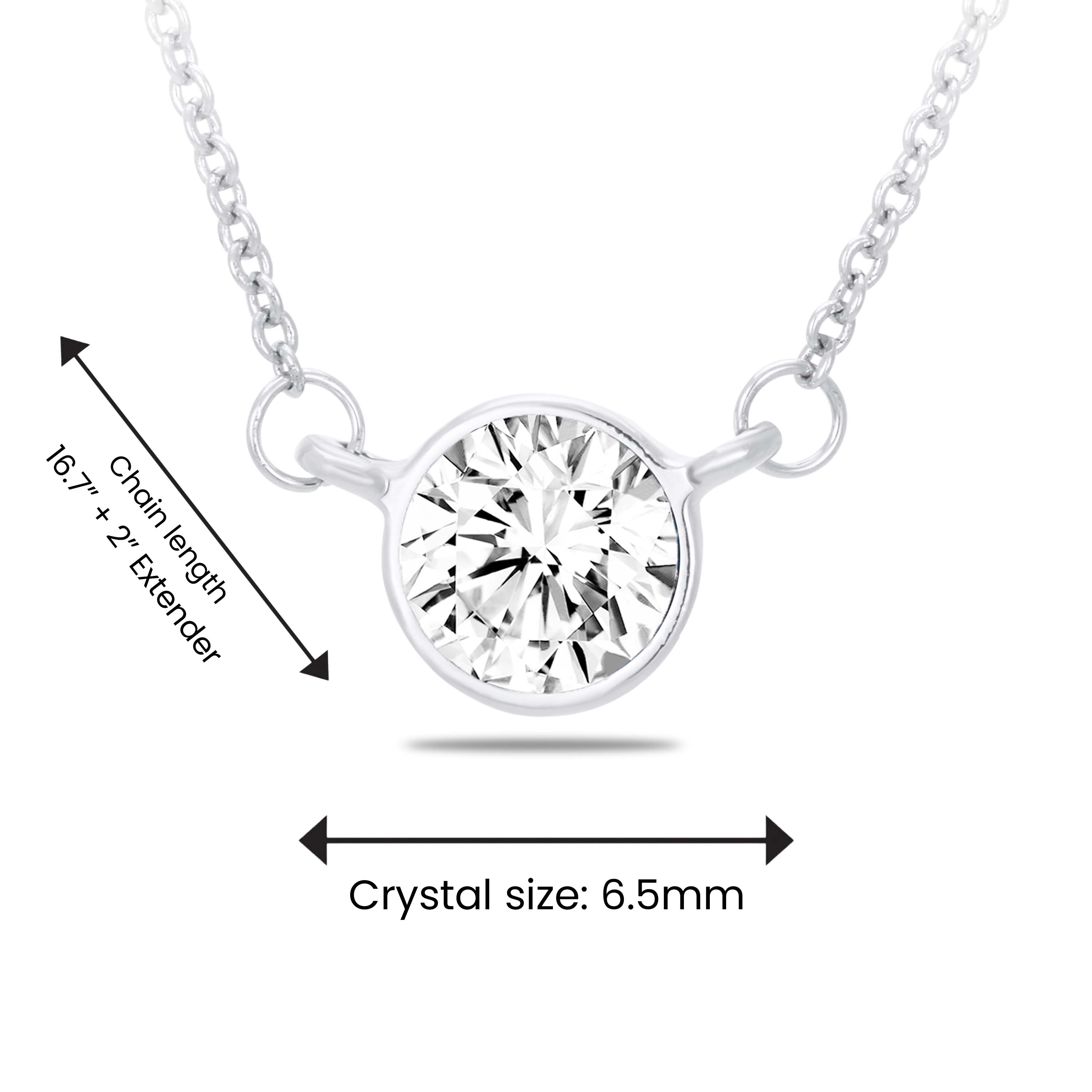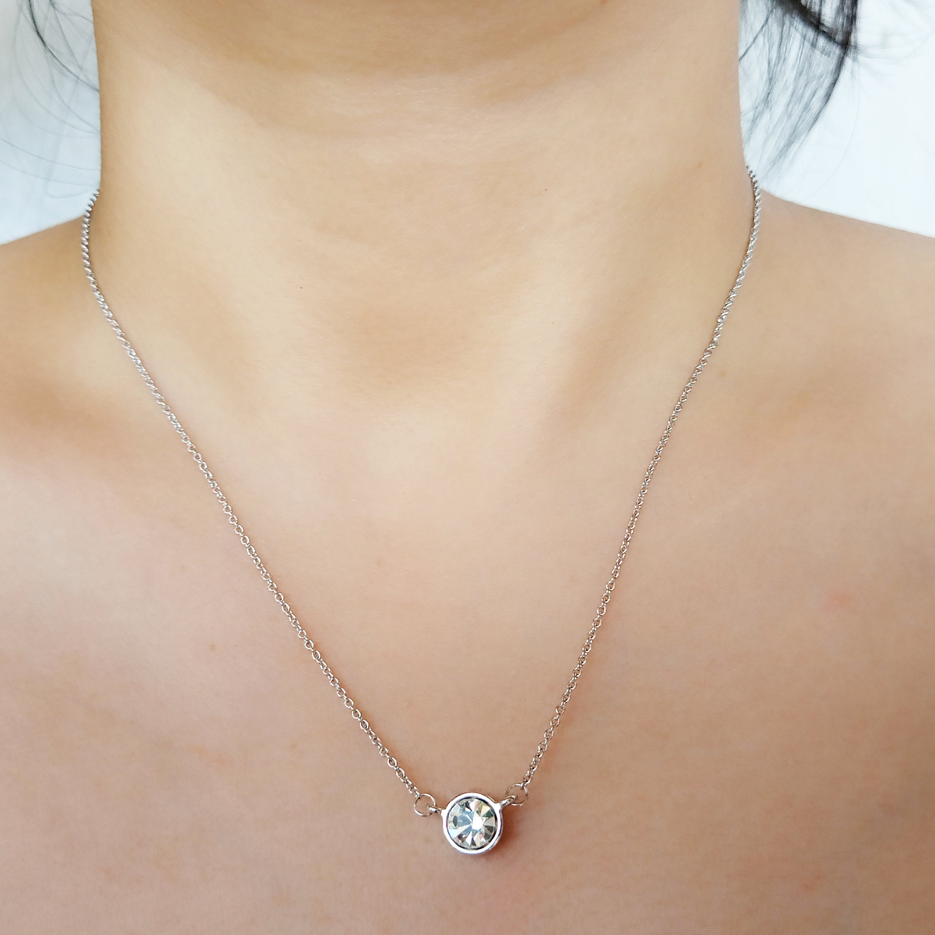 Round single stone crystal pendant. Bezel Setting. Necklace Chain linked to the pendant on the two sides. Austrian crystals. Simulated Diamond