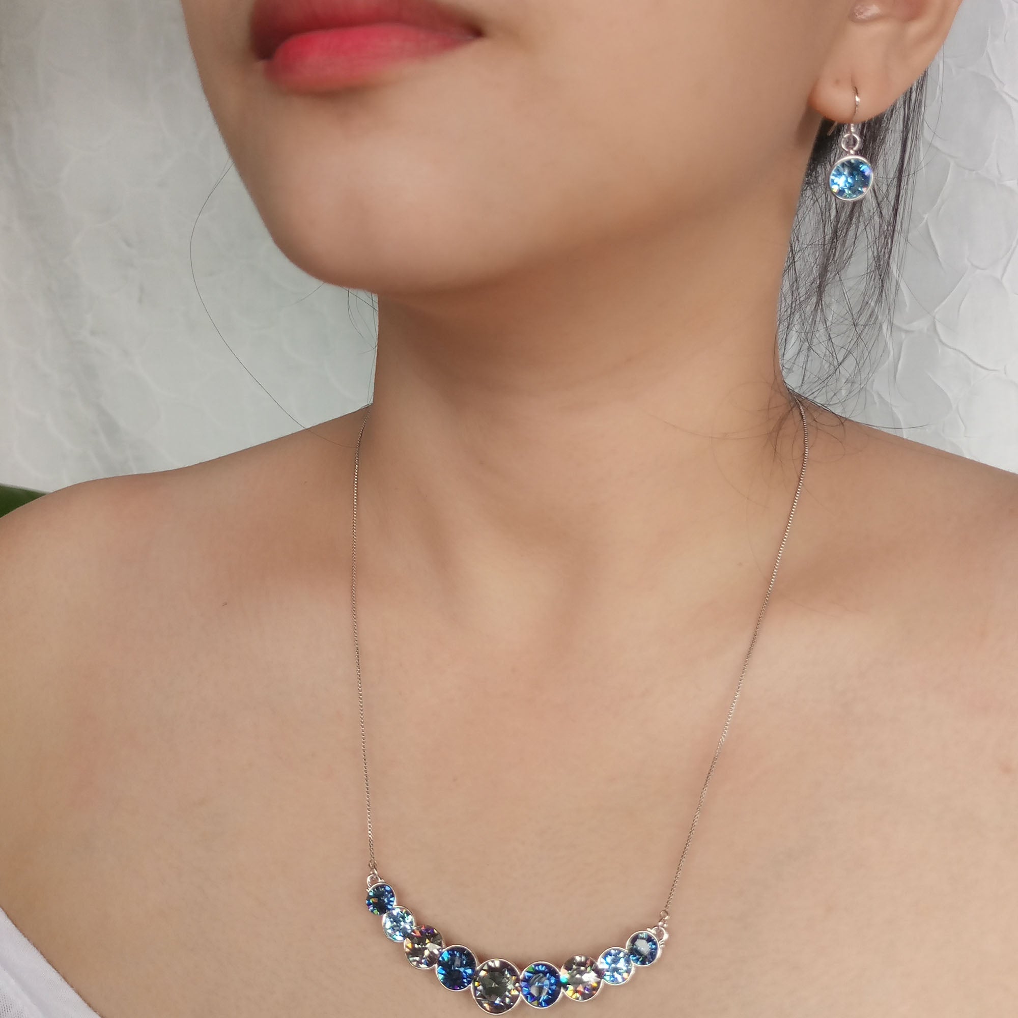 This elegant multi-stone necklace features dazzling Austrian crystals that catch the light beautifully, adding a touch of glamour to any outfit. Perfect for special occasions or elevating everyday style.