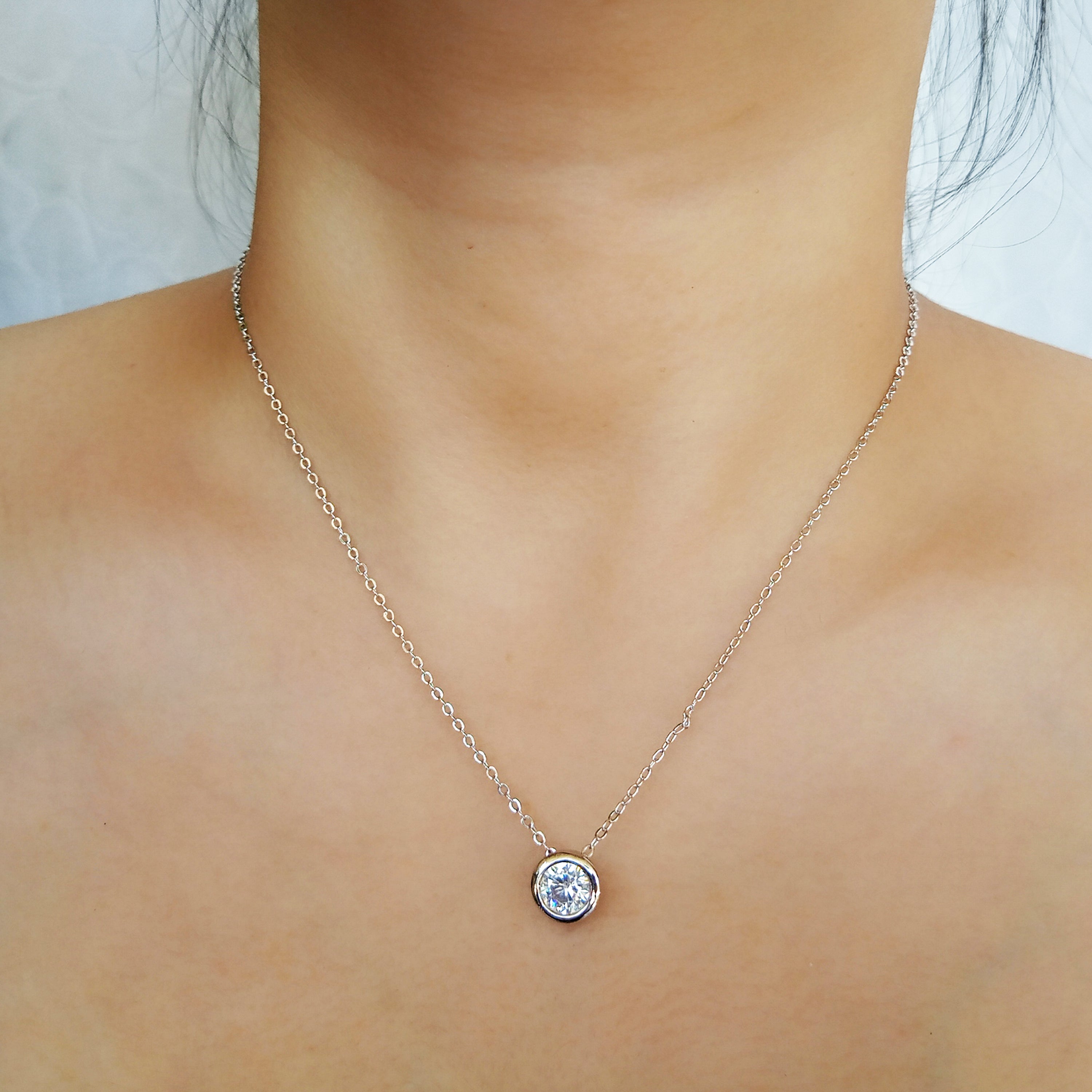 The necklace features a 6.5 mm simulated diamond CZ, perfectly sized for a subtle yet noticeable sparkle.