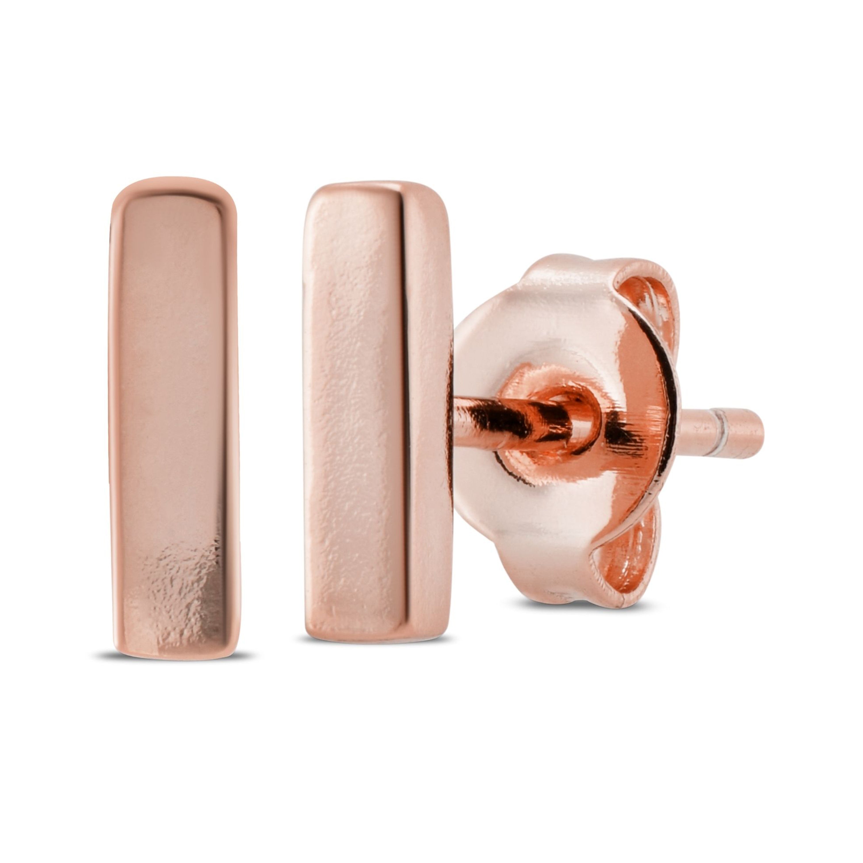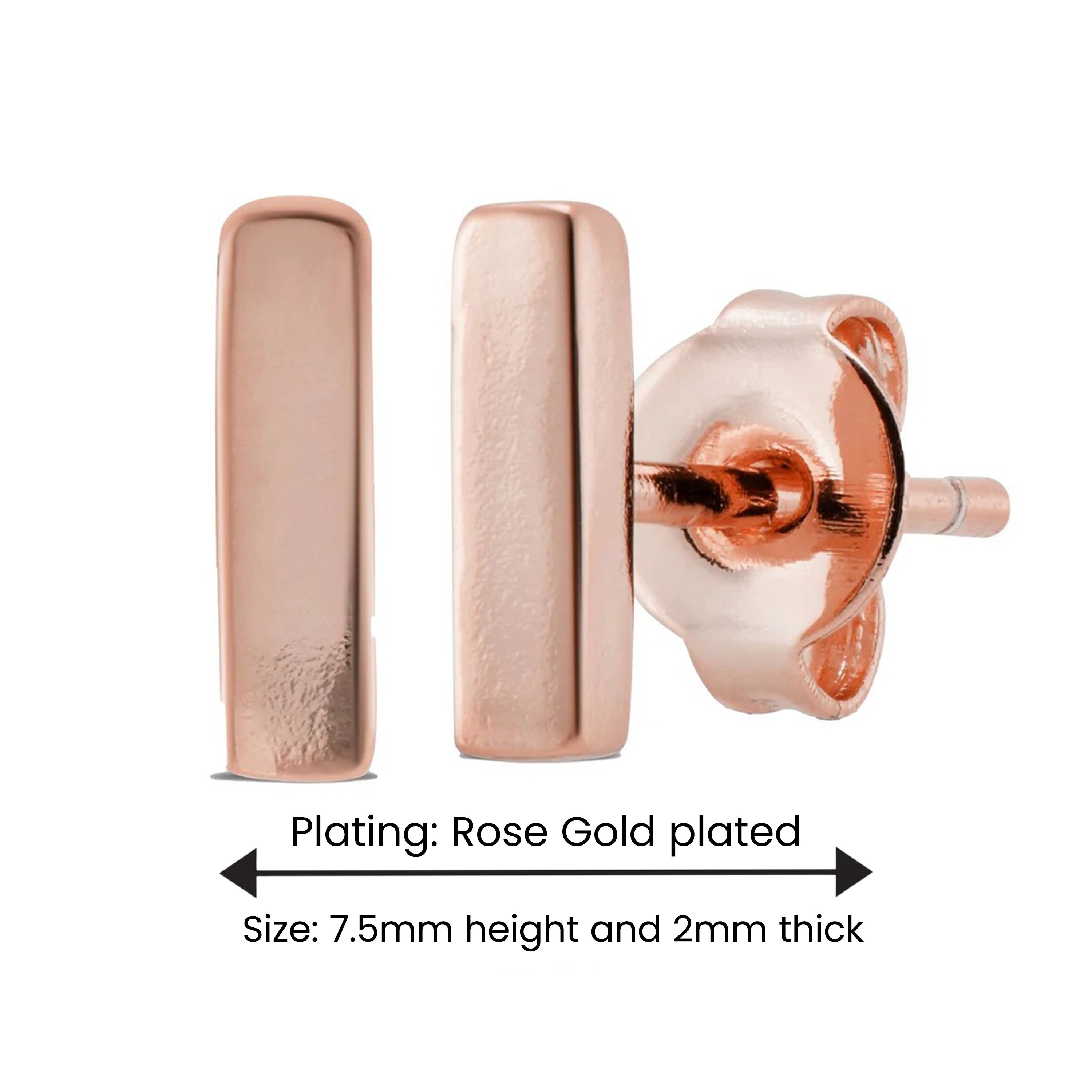 Delicate Rose Gold Plated Studs – 7.5mm height and 2mm thick, Accented with Dazzling Cubic Zirconia for an Elegant Sparkle.