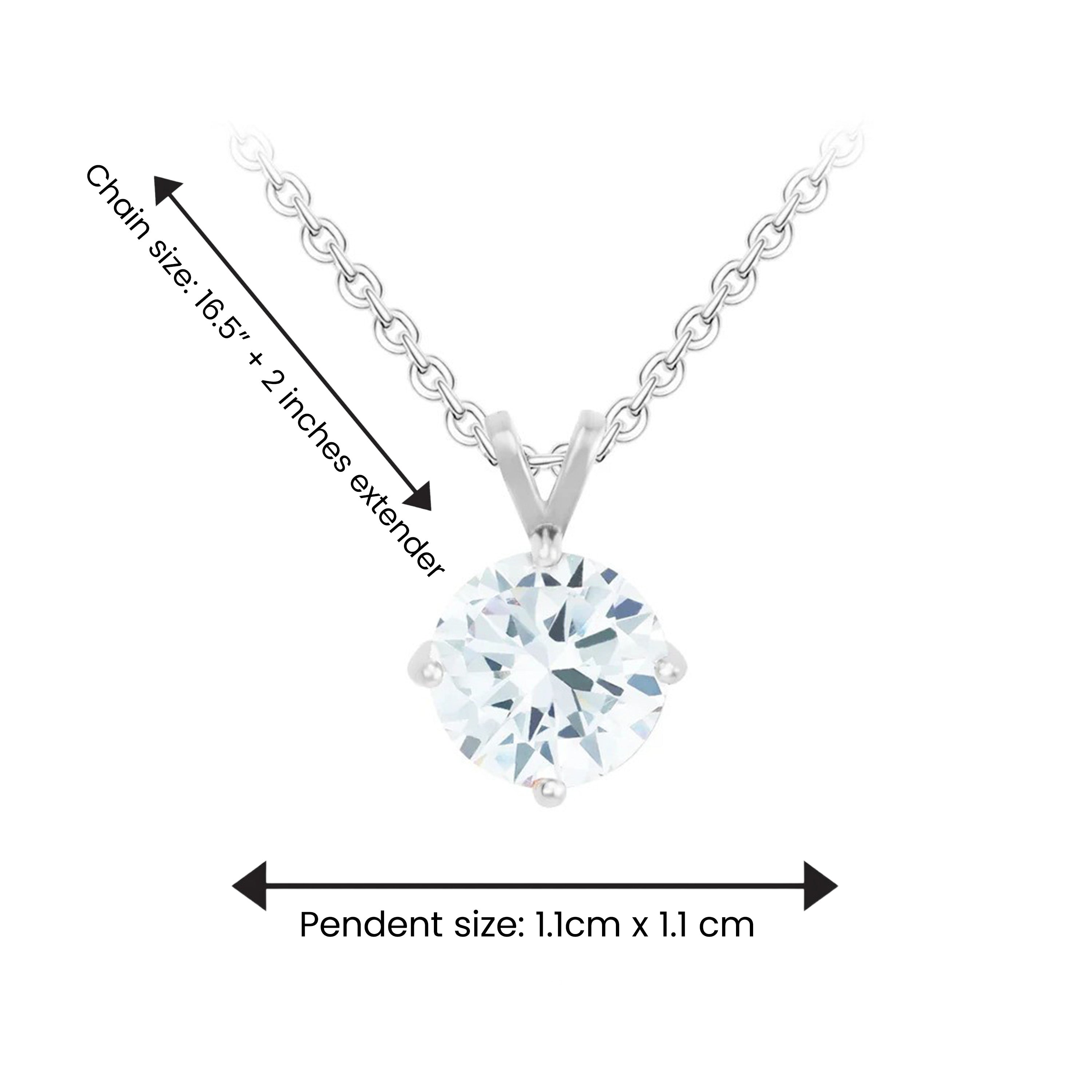This timeless Solitaire Pendant Rhodium color, with its luxurious Rhodium plating, effortlessly complements any look—from casual daywear to elegant evening attire. Its simple yet sophisticated design makes it the perfect accessory to add a touch of elegance to every outfit and occasion.